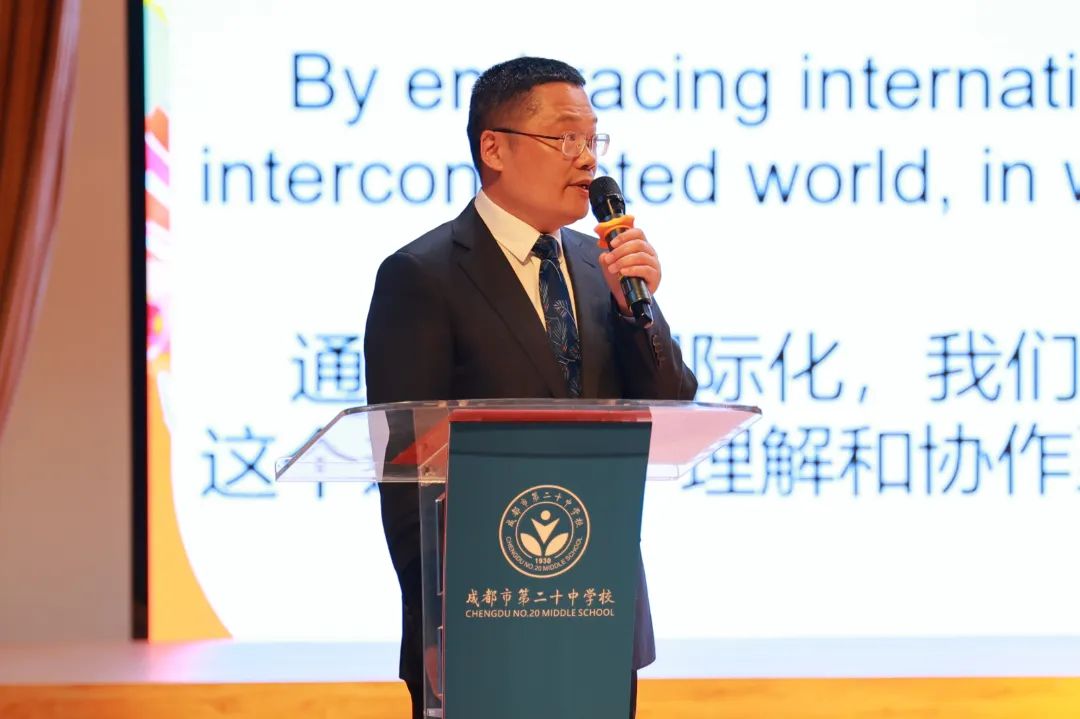 在轻松愉悦的氛围中,副校长杨关键用英语致辞。他强调了国际化教育的重要性,并鼓励学生们积极参与国际交流活动,拓宽视野,增长见识。
