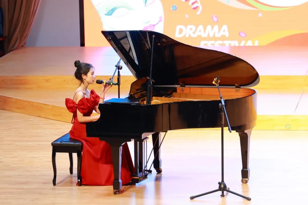 高二8班张怡川同学以一曲钢琴曲目《我将永远爱你》为大赛拉开了序幕。她的演奏如潺潺流水,让听众如沐春风,不仅展示了其精湛的技艺,更传递了深深的情感,为现场观众带来了一场视听盛宴。