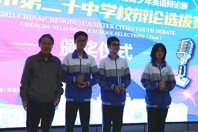 最后,金牛区教育局对外交流中心负责人蒋莹女士,学校校长胡铃冬,副校长刘利军上台分别为优秀的辩手们和获胜方颁了奖,也给选手们提出了新的奋斗方向,在迈向更高水平的赛途中,甚至更远的人生赛道上,也要不言放弃,奋战到底;做一个有梦想、有思想、也有斗志的大同人。这三位辩手将代表我校和金牛区参加成都市友城辩论赛,在此预祝本次优秀的辩手们乘风破浪,所向披靡!