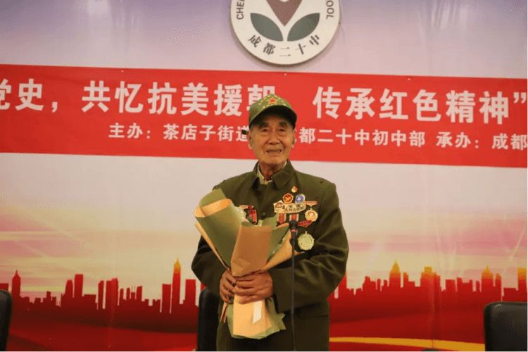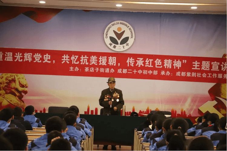 为了让广大青少年了解光辉党史,传承发扬红色精神,茶店子街道和成都二十中联合邀请91岁高龄的抗美援朝老兵莫若健进行了以“重温光辉党史,共忆抗美援朝,传承红色精神”为主题的讲座。此次讲座在初中部四楼报告厅举行。
