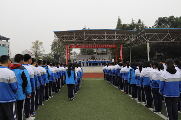 10月24日上午,我校高中部全体学生在运动场举行了第25届校团委、学生会的成立大会暨新旧校团委、学生会的交接仪式。