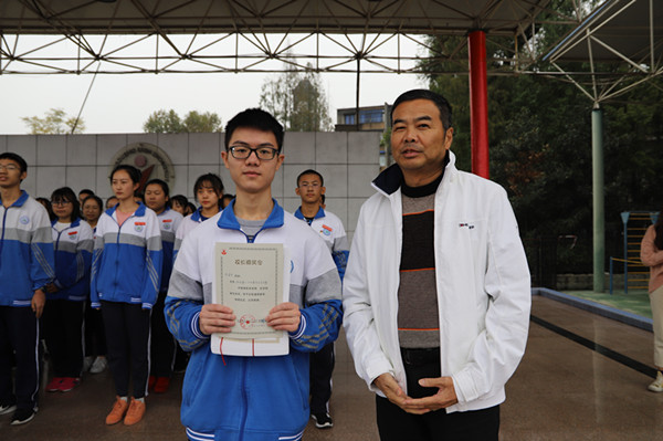 朱赵全副校长为上届学生会成员们颁发聘书和荣誉证书,为学生会主席陈章杰同学颁发了校长嘉奖令。