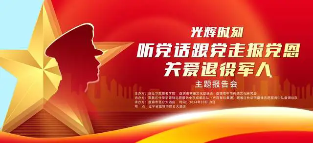 2024年10月19日,庄仕华志愿者学院携手大洼区孝廉文化促进会及盘锦市中华传统文化研究会,共同举办了《光辉时刻:听党话、跟党走、报党恩,关爱退役军人》主题报告会。会上,跟着庄仕华学雷锋志愿服务中队成都总队总队长、四川光珲餐饮集团董事长曾光辉,与盘锦市优秀退役军人王干,分别做了题为《铁血荣光,致敬无畏的岁月》与《我永远是党和人民的一个兵》的精彩报告,深情回顾了军旅生涯的辉煌与坚守。