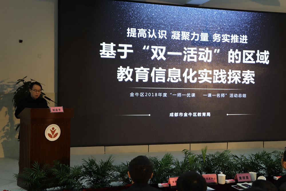 其中,金牛区作为全市部级优课获奖最多的的区县,由教育局刘启平副局长作了《建教育强区、办品牌教育》的发言,将金牛区在“一师一优课”活动中的经验作了分享。