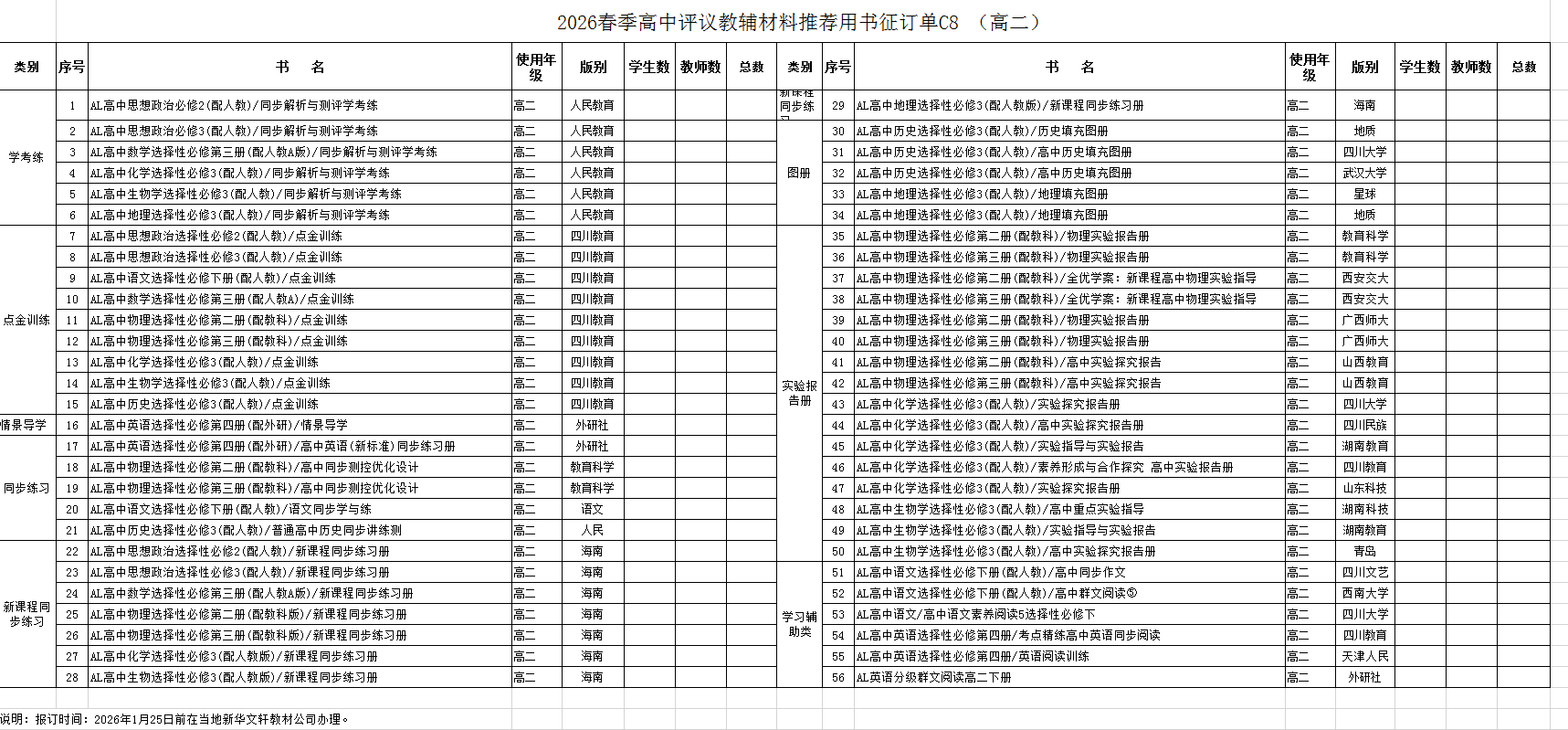 2026春季高中教辅征订(高二)