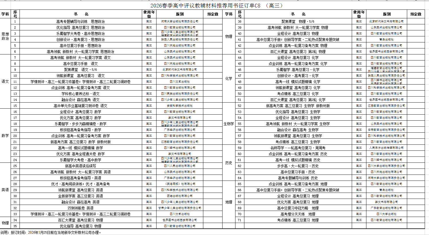 2026春季高中评议教辅征订(高三)